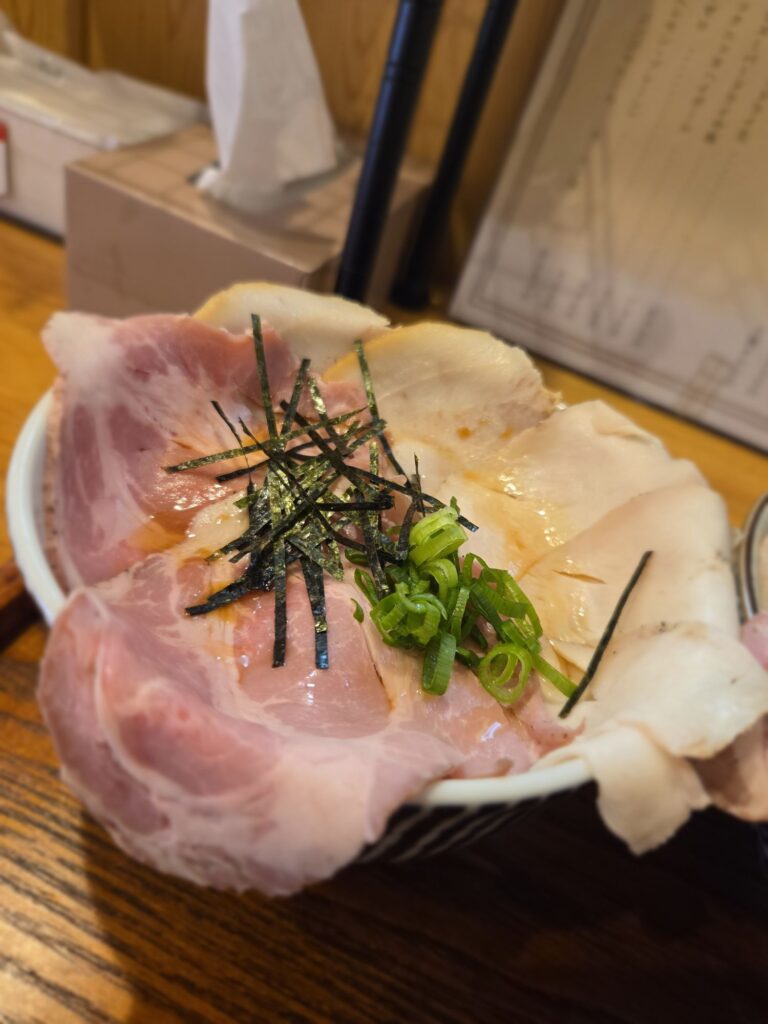 看板商品の煮干しラーメンと3種のチャーシュー丼